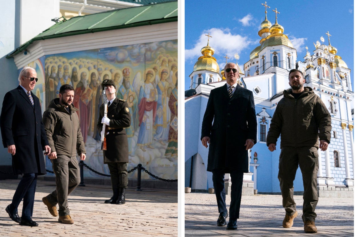 “One year later, Kyiv stands. And Ukraine stands. Democracy stands,” said Biden in a joint press conference with Zelensky outside of the official presidential residence.