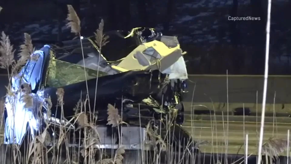 Video obtained by ABC7 shows a Nissan SUV with extensive damage.