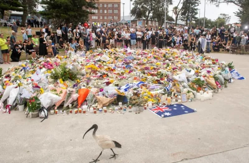 People gather at the floral tribute at Bondi Beach to honour the victims of a mass shooting targeting a Hanukkah celebration on Sunday at Bondi Beach, in Sydney, Australia, December 16, 2025. (credit: REUTERS/Jeremy Piper)