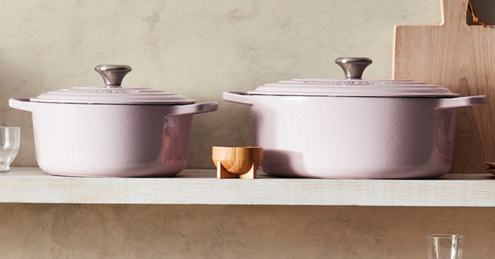 Le Creuset is probably the most iconic brand in the cookware space. My mom has had her “flame”-colored Le Creuset Dutch oven for at least as long as I’ve been alive (29 years). My brother and sister-in-law got a full set of “Caribbean blue” mugs and serving dishes from their wedding registry. And now, finally, you can deck out your kitchen with a full line of pale purple Le Creuset pots and pans, a shade it’s dubbed “shallot.”