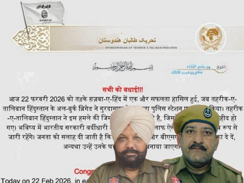 answer – In Punjab, two policemen posted at Durangala Police Post in Gurdaspur were shot dead. Posters were shared on social media on Sunday evening (22 February), in which a group named Tehreek-e-Taliban Hindustan was claiming responsibility. The poster was claimed to be Pakistan-based.