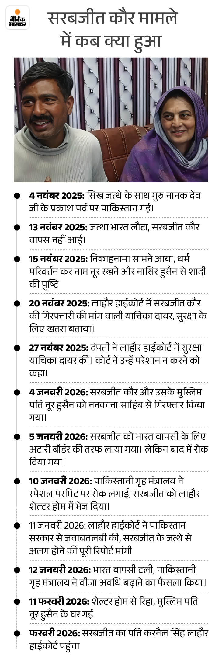Karnail Singh, husband of Punjabi woman Sarabjit, who went to Pakistan on the pretext of visiting a Sikh group and married a Muslim man, has reached the Lahore High Court. Karnail has filed a petition in the High Court demanding the deportation of Sarabjit from Pakistan and sending him to India. to do