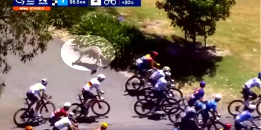 Rider Bounces Back From Kangaroo Crash During Cycle Race